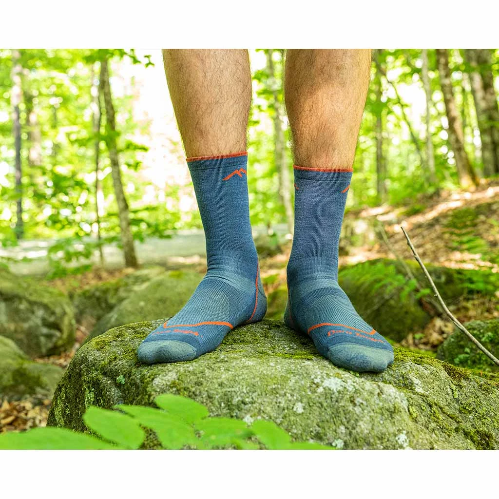 Hikers have walked millions of miles in Darn Tough’s cushioned Hiker socks. These tried and tested trail companions feature the brand’s legendary performance fit to eliminate slipping, bunching and blisters. The seamless construction and fine gauge knit offers both durability and comfort, while a merino wool blend optimises breathability and performance by wicking moisture away from the skin to keep your feet cool. Merino’s naturally antimicrobial properties also help to repel bacteria and odours. The micro crew is a shorter sock that comes just above the top of a standard hiking boot, and this lightweight version offers a low profile in modern trail footwear without sacrificing mile-after-mile performance. You also get increased breathability with mesh panels on top of the foot, a new smooth ribbing upper and extended cushioning over the Achilles