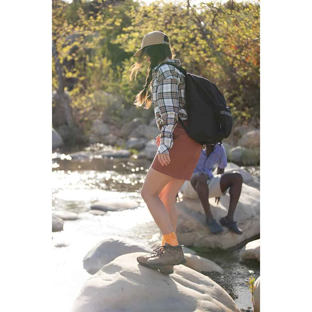 Short shorts are great and all but sometimes you want something with a little more coverage. Something you can feel totally at ease and yourself in, whether you’re out hiking a trail, digging a veg patch or swept up in the whirlwind of life. Enter the Gibson shorts from KAVU. Made from organic cotton with a touch of stretch for easy movement and a relaxed, comfortable fit, they’re easy to wear and look good enough for city as well as trail life. Yet details like an elasticated waistband and integrated webbing belt give it outdoor heritage and practicality. When the days stretch out, you want to do the same. The Gibson shorts are perfect for that – with no fear of flashing.
