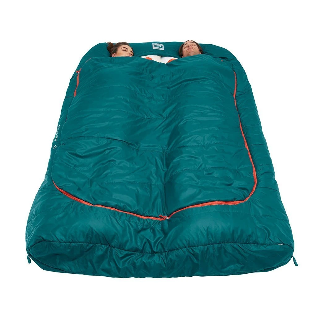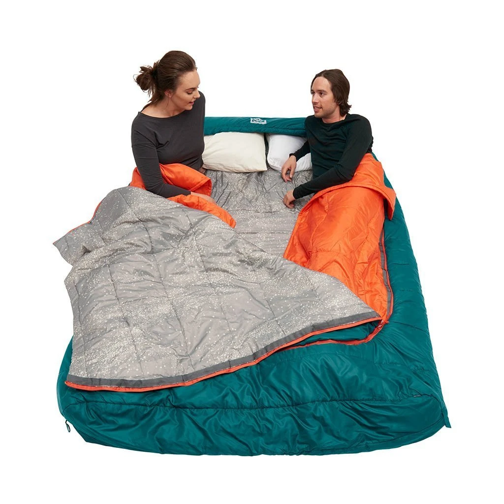 If you’re a snuggly sleeper but still like room to wriggle, then this is the bag for you. Wider than a standard double with a hood that accommodates two standard-sized pillows, the Tru. Comfort Doublewide gives each person their own personal snuggle blanket and foot vent. It also has a comfort-tuck zipper system so if you sleep hotter than your adventure partner, you can adjust your temperature without letting them get cold. Full of cosy Cloudloft synthetic insulation the Tru. Comfort Doublewide will keep you warm even during cooler nights.