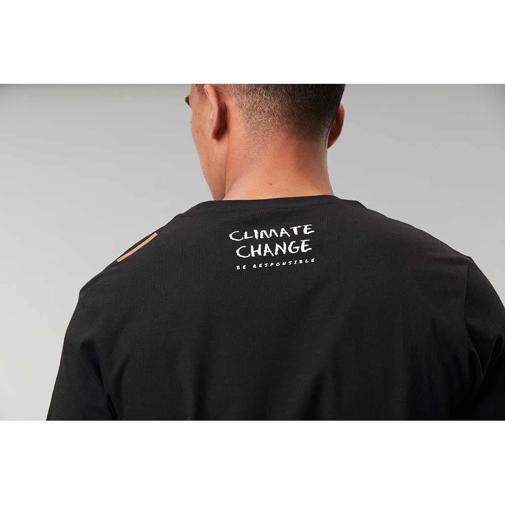 - Climate change print on the back of the neck