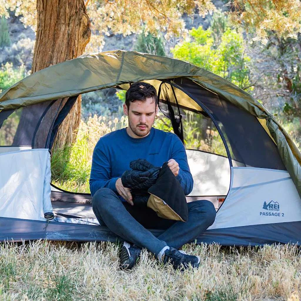 - Packs into its own integrated stuff sack for portability and convenience