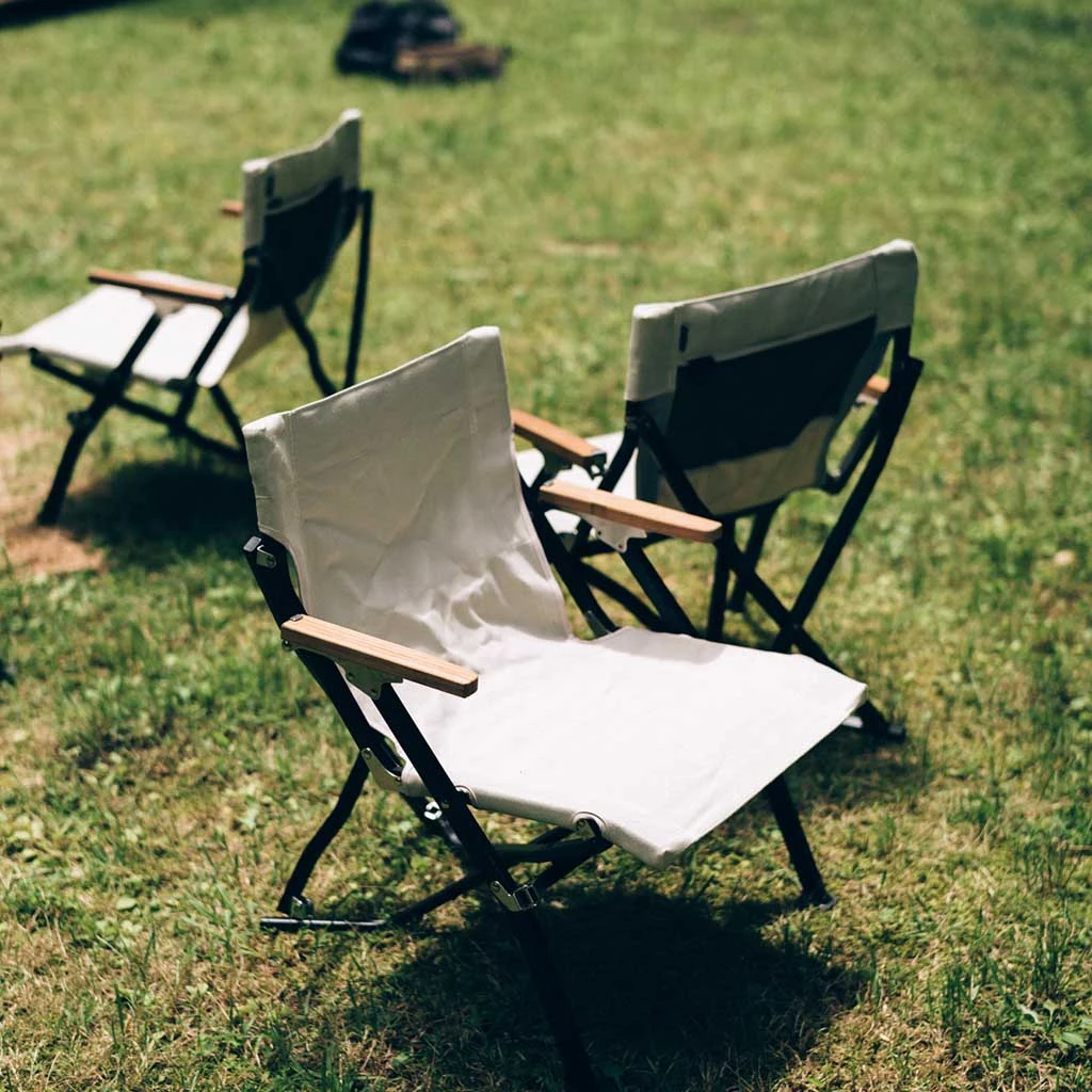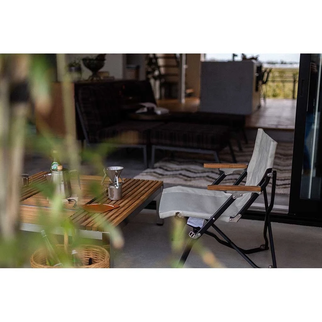 - Body: Aluminium Alloy, Natural Wood, Stainless Steel, & Polyester Canvas