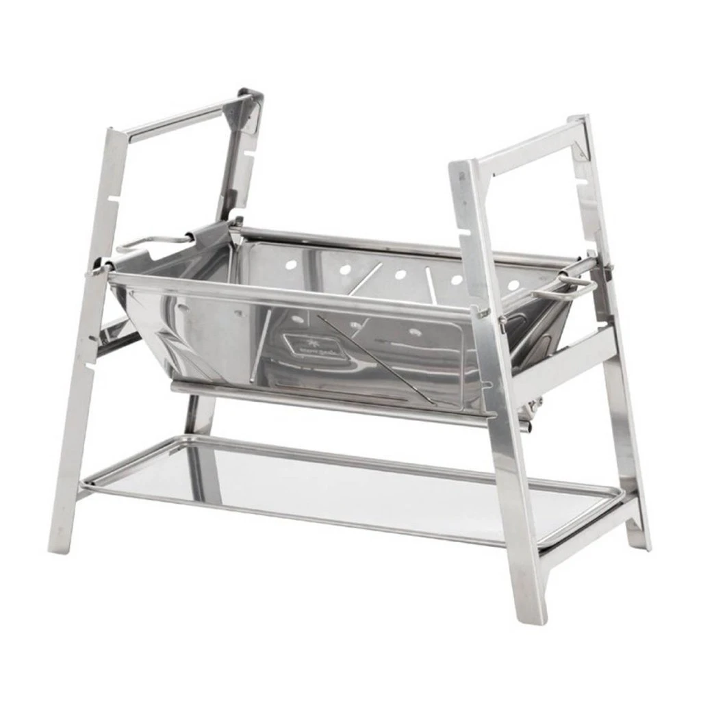 Snow Peak’s original Pack & Carry Fireplaces are bona fide campsite icons in Japan. But the brand’s design team decided there was room for one more iteration of this classic product. They figured the large firepits were too big for some people to store at home, whereas the small version was great for packability but not so perfect for burning larger pieces of firewood. Enter the Takibi Solo, which has a new, improved rectangular shape that brings all the convenience of the original fireplace without the bulk. Made from sturdy stainless steel, this fireplace will be the focus of any gathering, whether in the garden, on the beach or at a campsite. You also get a base plate, which reflects heat away from the ground so you can abide by leave no trace principles. And you can take it anywhere, since it folds down flat and slips into a polyester carry case for easy transportation
