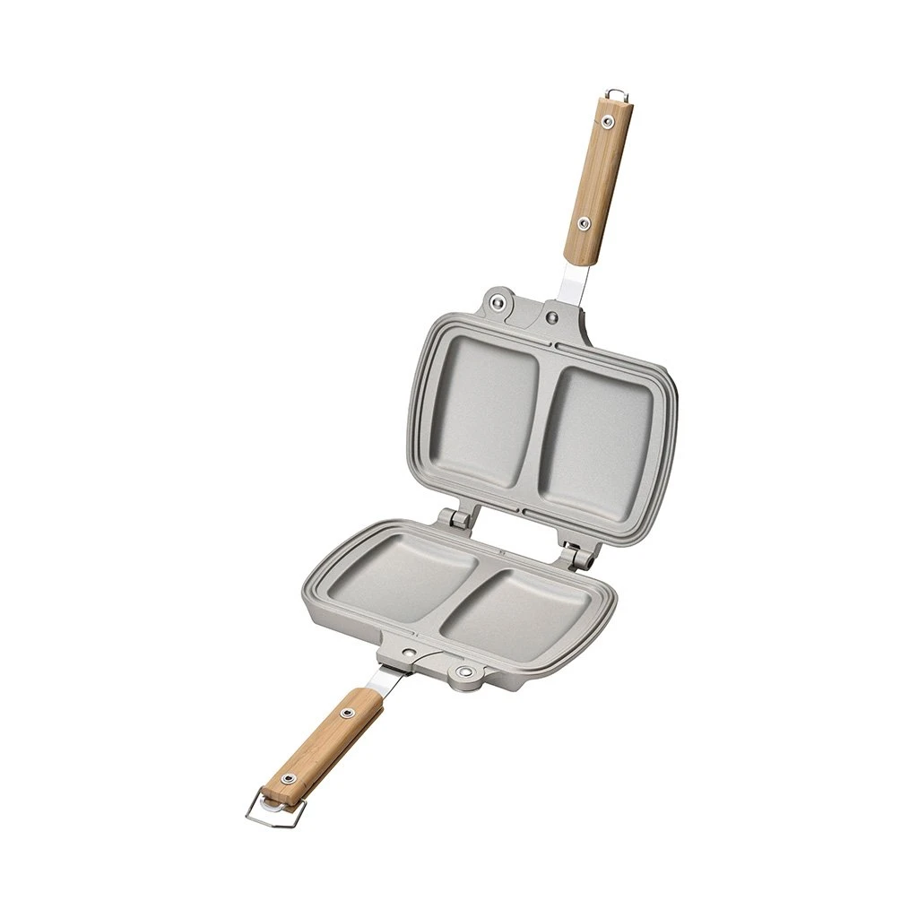 As far as we’re concerned, a grilled cheese toastie is one of life’s greatest pleasures. Now you can bring perfect toasted sandwiches to your camp with Snow Peak’s Tramezzino sandwich maker. Constructed from robust stainless steel and lightweight yet durable aluminium, the versatile design will work over a campfire, on a grill or BBQ, or even over a double burner camping stove. It’s ideal for camp, home or garden use. The bamboo handle also features a locking catch to keep it securely sealed shut when it’s time to flip it over. The handles fold away ingeniously, and the two grill plates are detachable for easy cleaning and compact, packable storage
